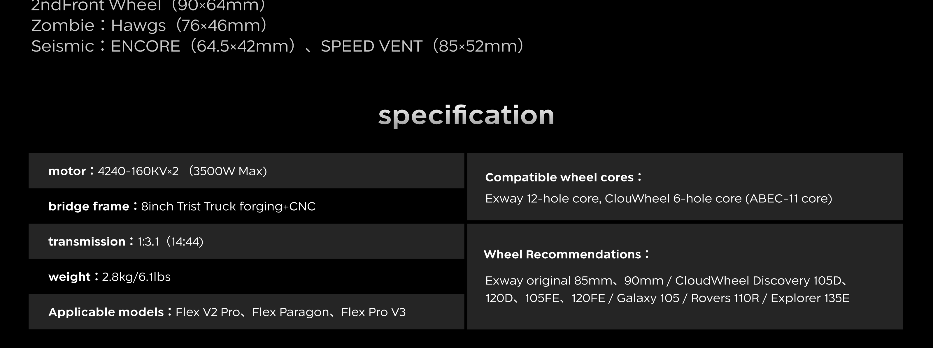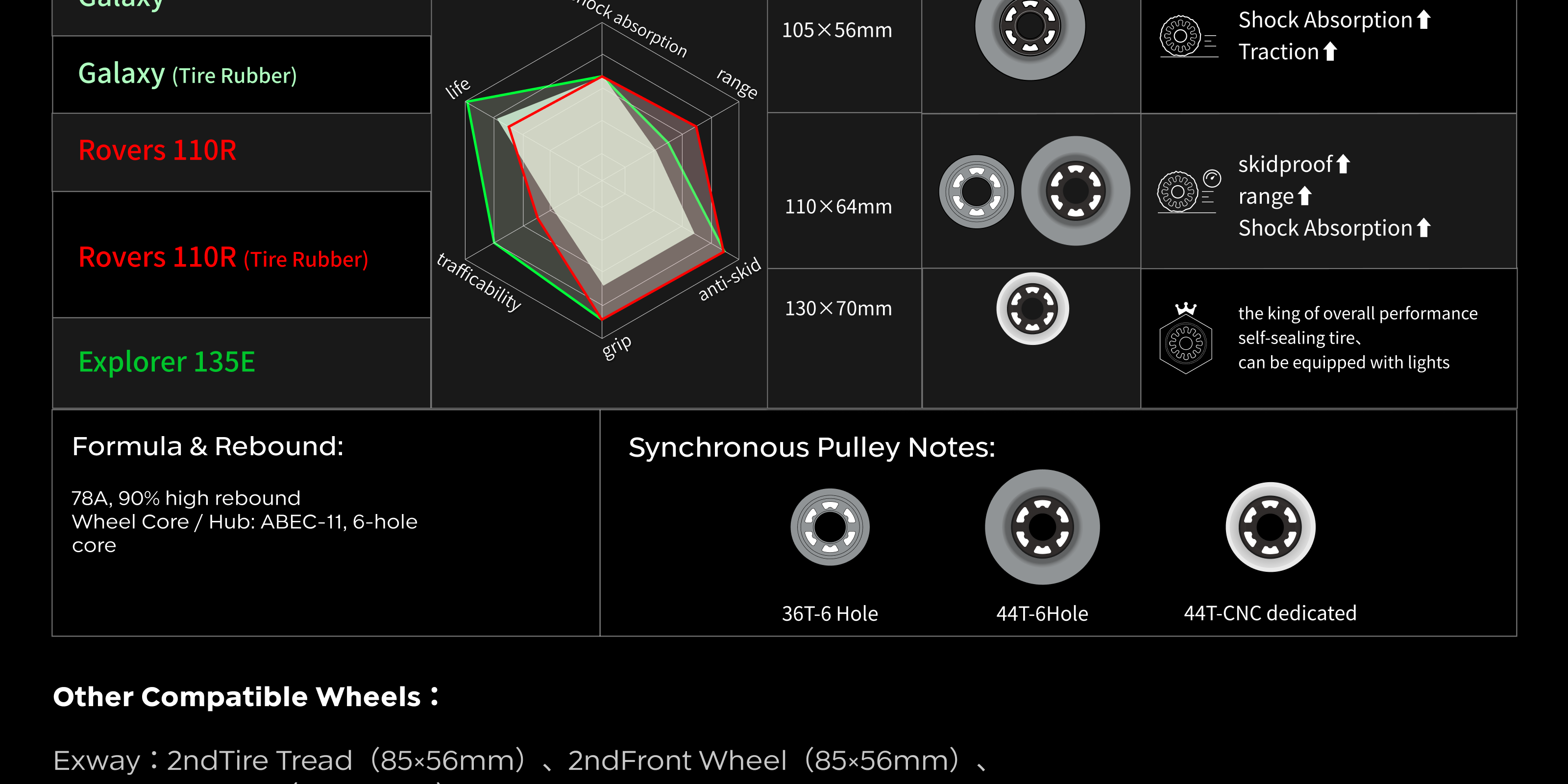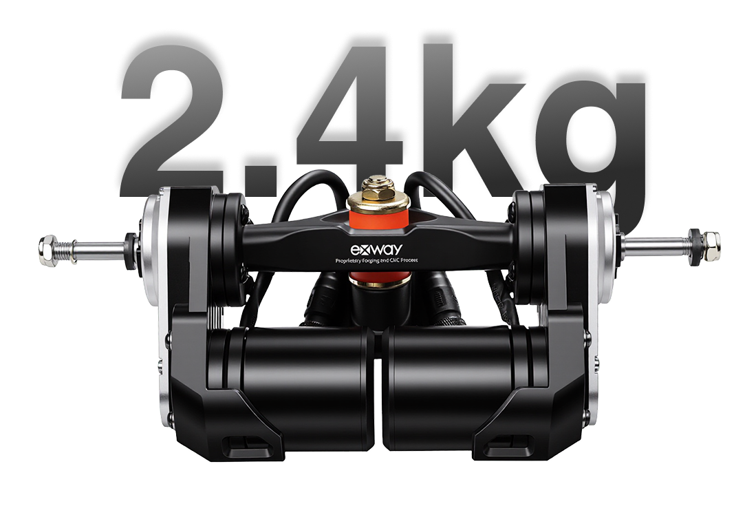 The first gear drive system with a size of less than 50mm, made of high-strength chrome-molybdenum alloy material—Exway's innovation never stops!The ground clearance is increased, boosting passability by 56%; the minimum size of wheels that can be used is reduced from 100mm to 70mm.