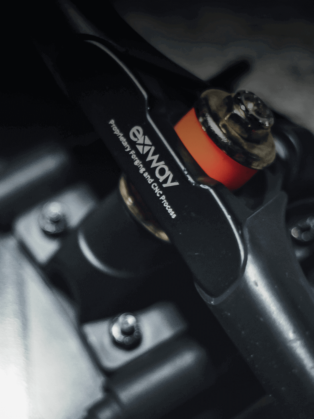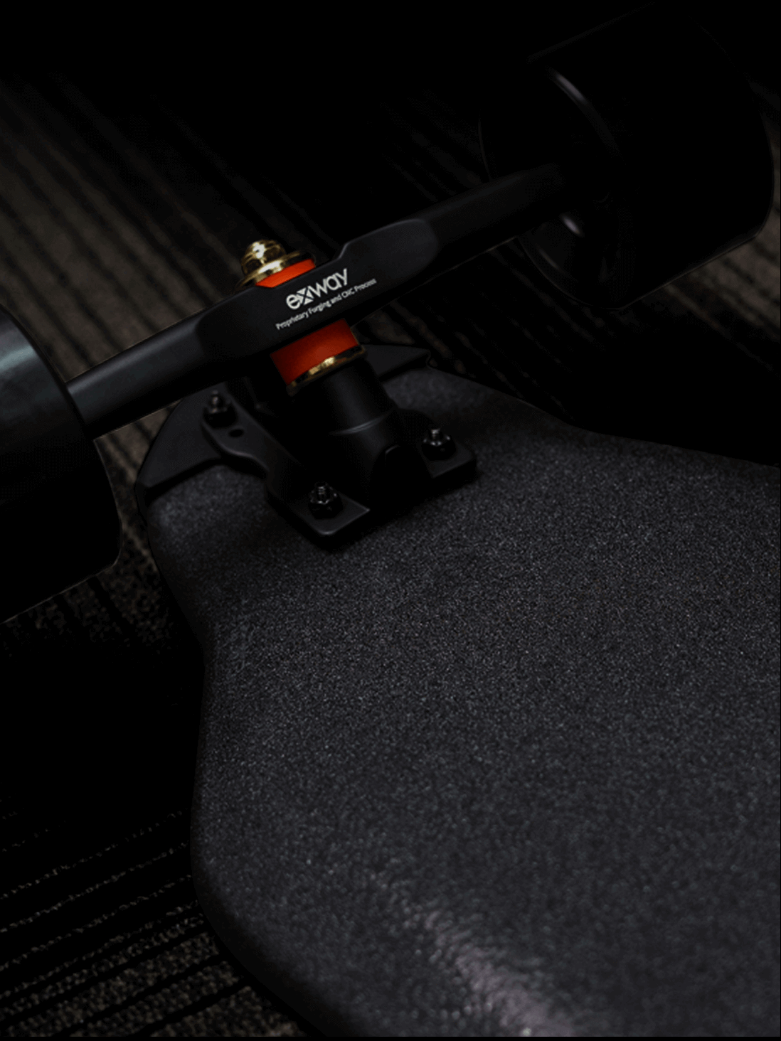 All-new Trist truck utilizes a Proprietary Forging and CNC Milling Manufacturing Process developed by Exway Engineering Team for improved strength compared with traditional die-cast trucks.