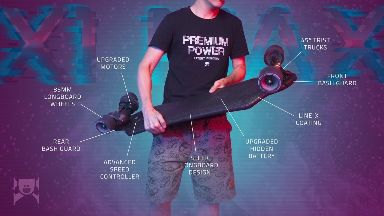 Despite the limited space within the deck, we increased the battery capacity by a further 20%, enabling up 30 kilometers or 18.6 miles of range. The board uses an integrated deck design, the components are inside the deck and the deck also uses our shock absorbing griptape. The ride therefore is extremely comfortable even over bad terrain and road surfaces.