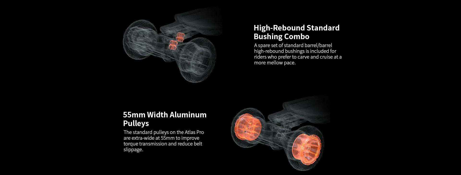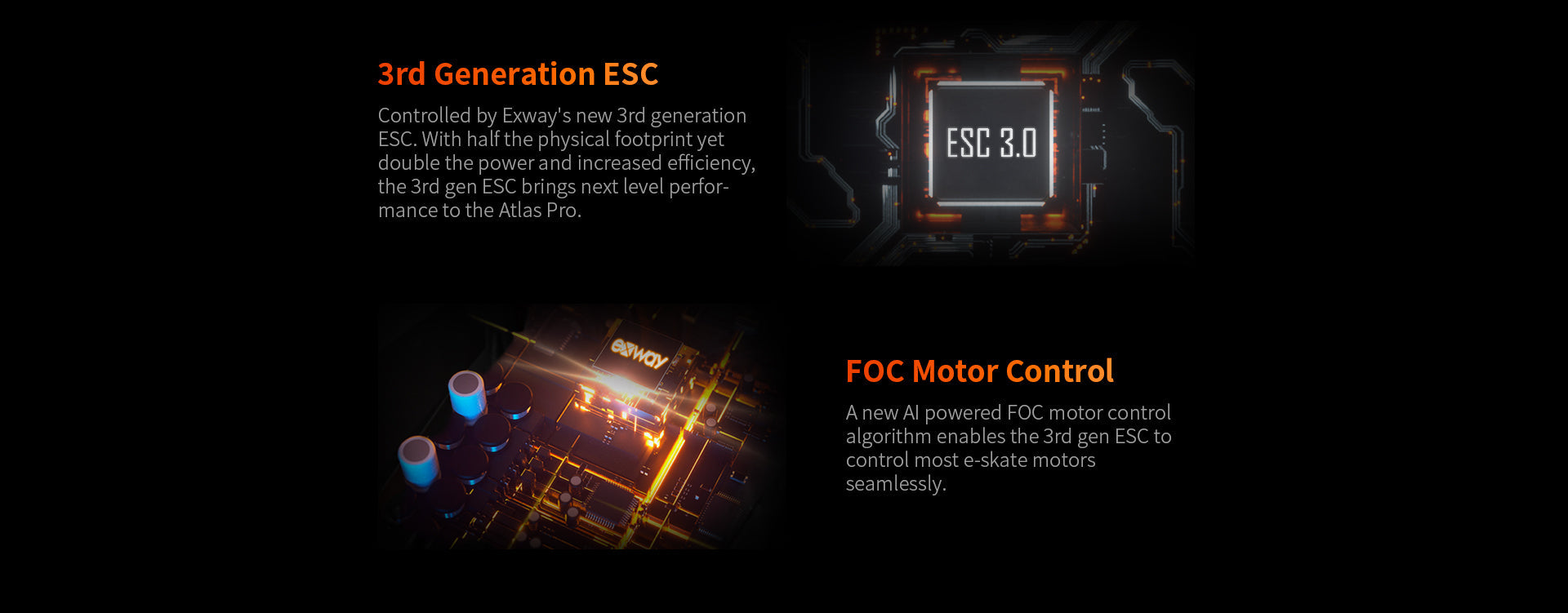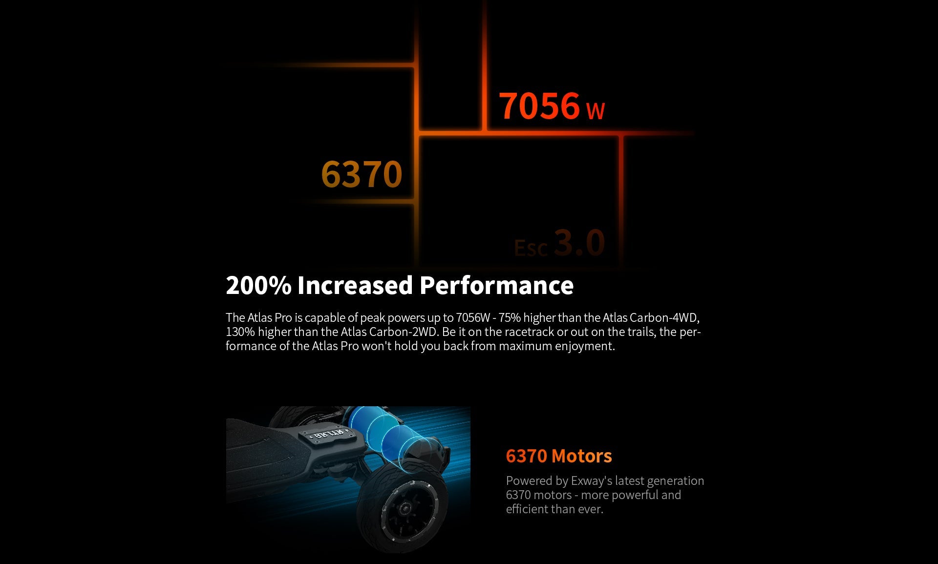 The new Atlas Pro is like the superhero of Exway’s creations. Enhanced with a 3-gen ESC and better motors, it takes the best of the Atlas Carbon and amps it up with: