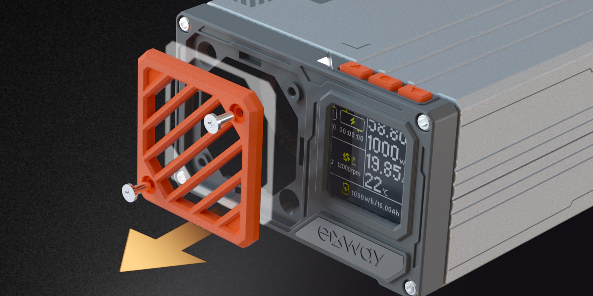 A 1.44-inch full-color LCD display provides all the information about the charger’s status, including graphical displays of power, temperature, and fan speed.