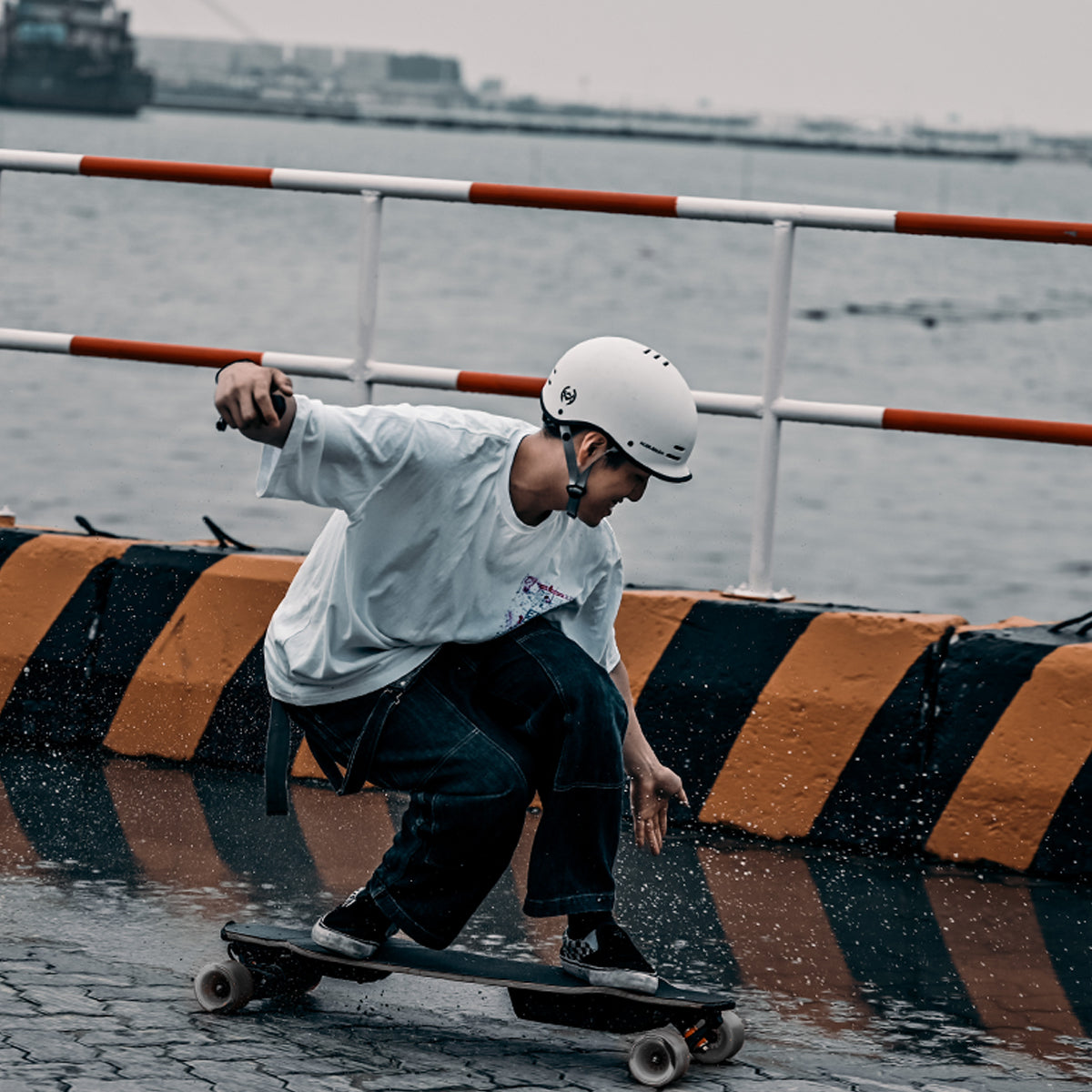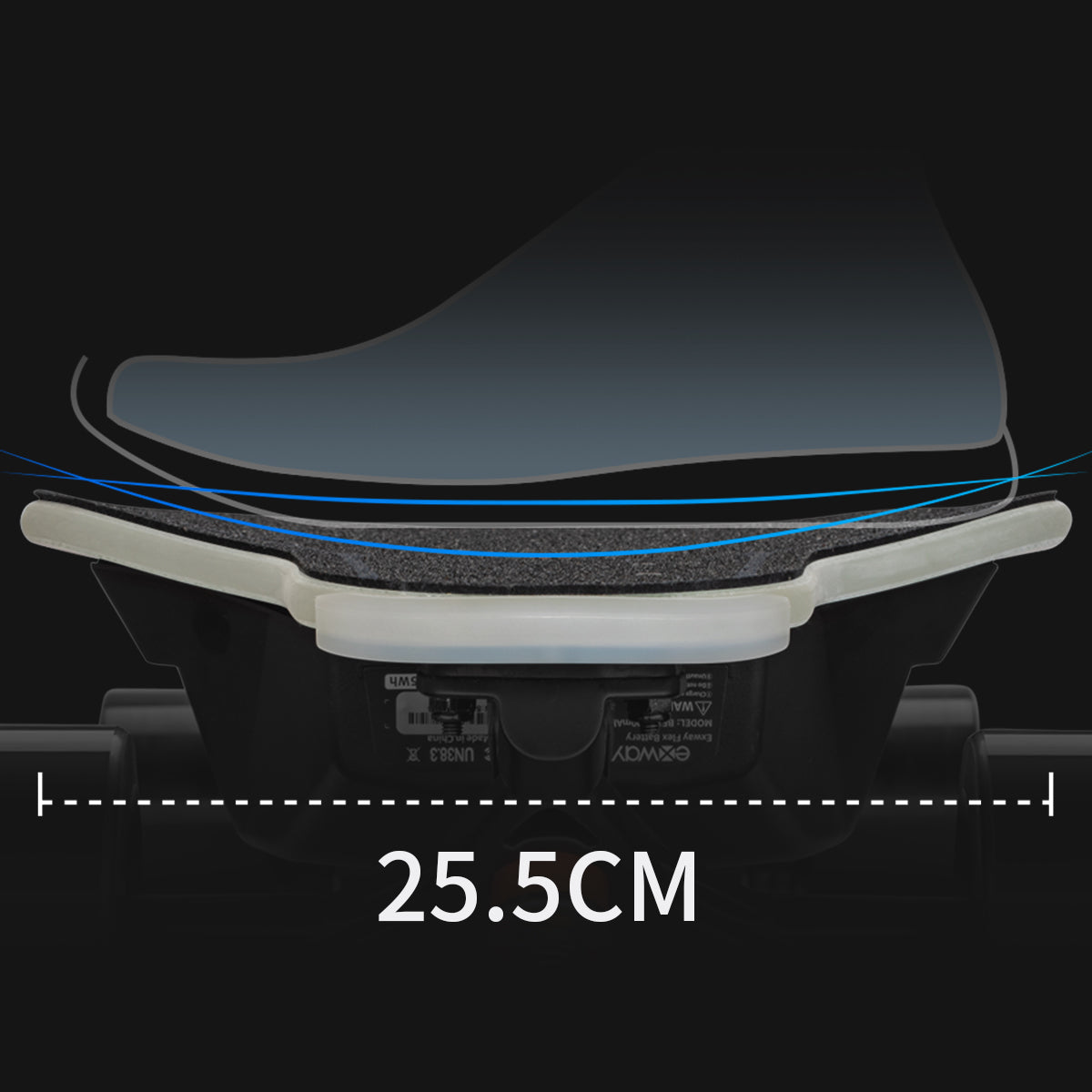 Flex 2 Pro is factory set to 20KM/H. When the rider reaches 10KM, the 1.2.3.4.Turbo gears are automatically unlocked, Can replace 80mm-120mm skateboard wheels. The maximum speed in Turbo mode can reach 50KM/H. If you want to ride in an area where stepping on the accelerator is prohibited, 2 Pro can also be driven without turning on the power. Exwayboard meets the IP55 waterproof standard. IP55 means that your skateboard can withstand water from the road, and splashes or raindrops on wet roads will not cause damage to it. Your skateboard is not suitable for long-term rain, immersion in water or pressurized spray. Do not use a high-pressure cleaner or sprayer to clean the skateboard.
